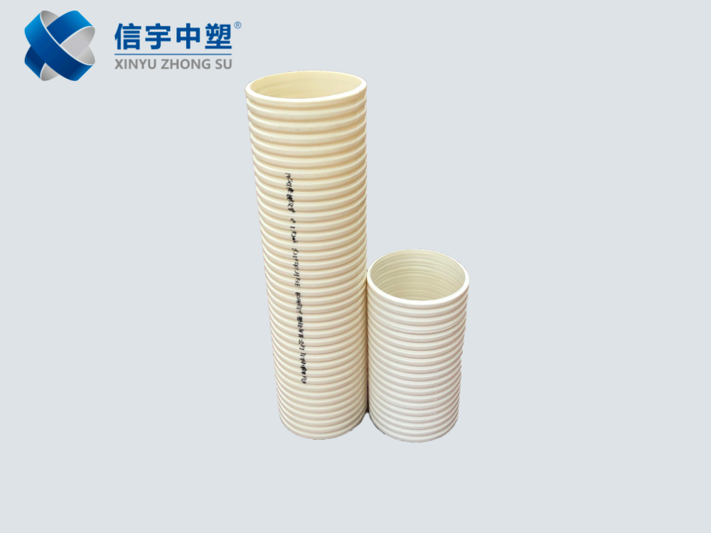 “信宇中塑”牌PVC-U双壁波纹管是一种以聚氯乙烯树脂为主要原料,加入适量助剂,经挤出成型的新型管材。产品具有重量轻、排水阻力小、抗压强度高、耐腐蚀、施工方便等优点,广泛应用于建筑物室外排水、市政排污等领域。