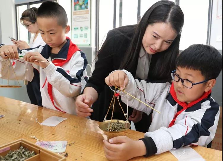 學(xué)生們?cè)诼犎∮嘘P(guān)中藥知識(shí)后,開始稱重艾葉、丁香、金銀花等6種中藥材,然后塞進(jìn)布包,一個(gè)小小的驅(qū)蚊包就做成了。