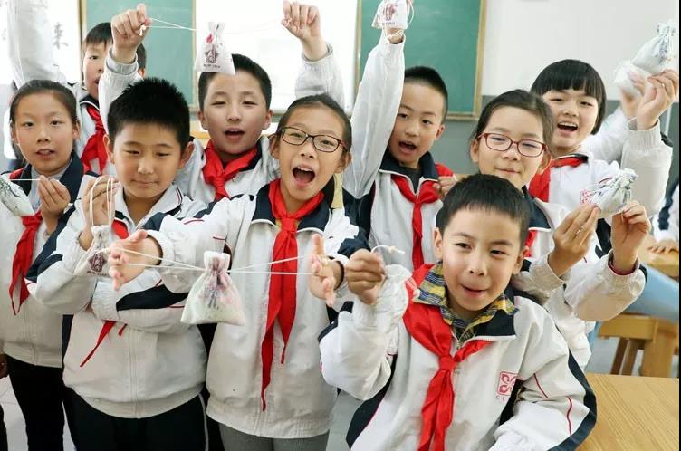 姑蘇區(qū)滄浪實(shí)驗(yàn)小學(xué)校的三年級(jí)學(xué)生,在我們工作人員的指導(dǎo)下學(xué)做中藥驅(qū)蚊包。
