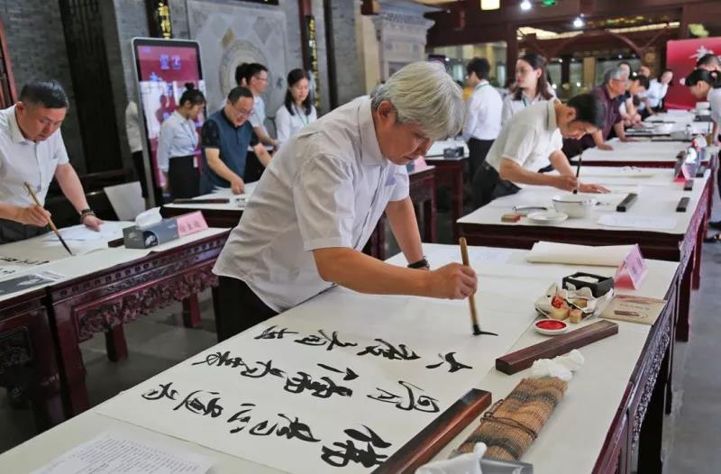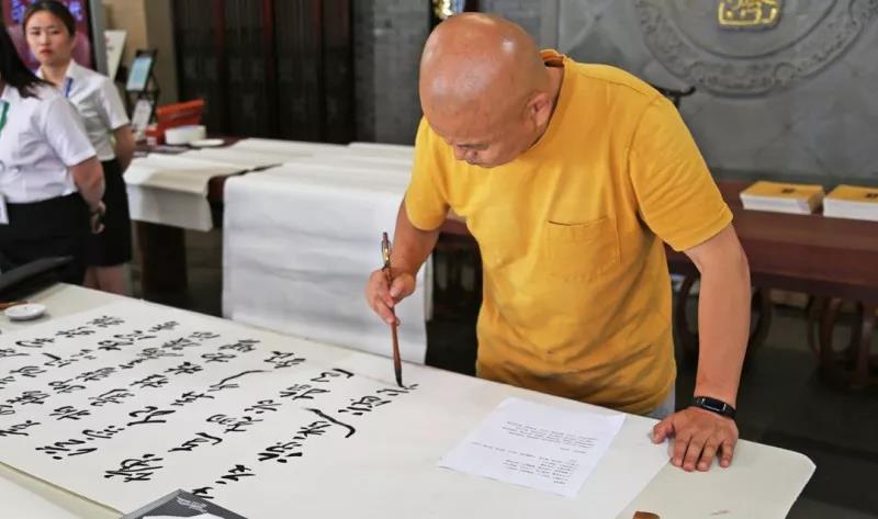 7月14日,為紀念李時珍誕辰500周年,李良濟攜手中國書法家協會中央國家機關分會舉辦一場主題為“書寫新時代”的大型書法活動。中國書法家協會中央國家機關分會志愿者服務團的10位書法家結合中藥元素進行了一次別開生面的創作。墨香藥香氤氳匯合,帶來了濃濃的文化韻味。